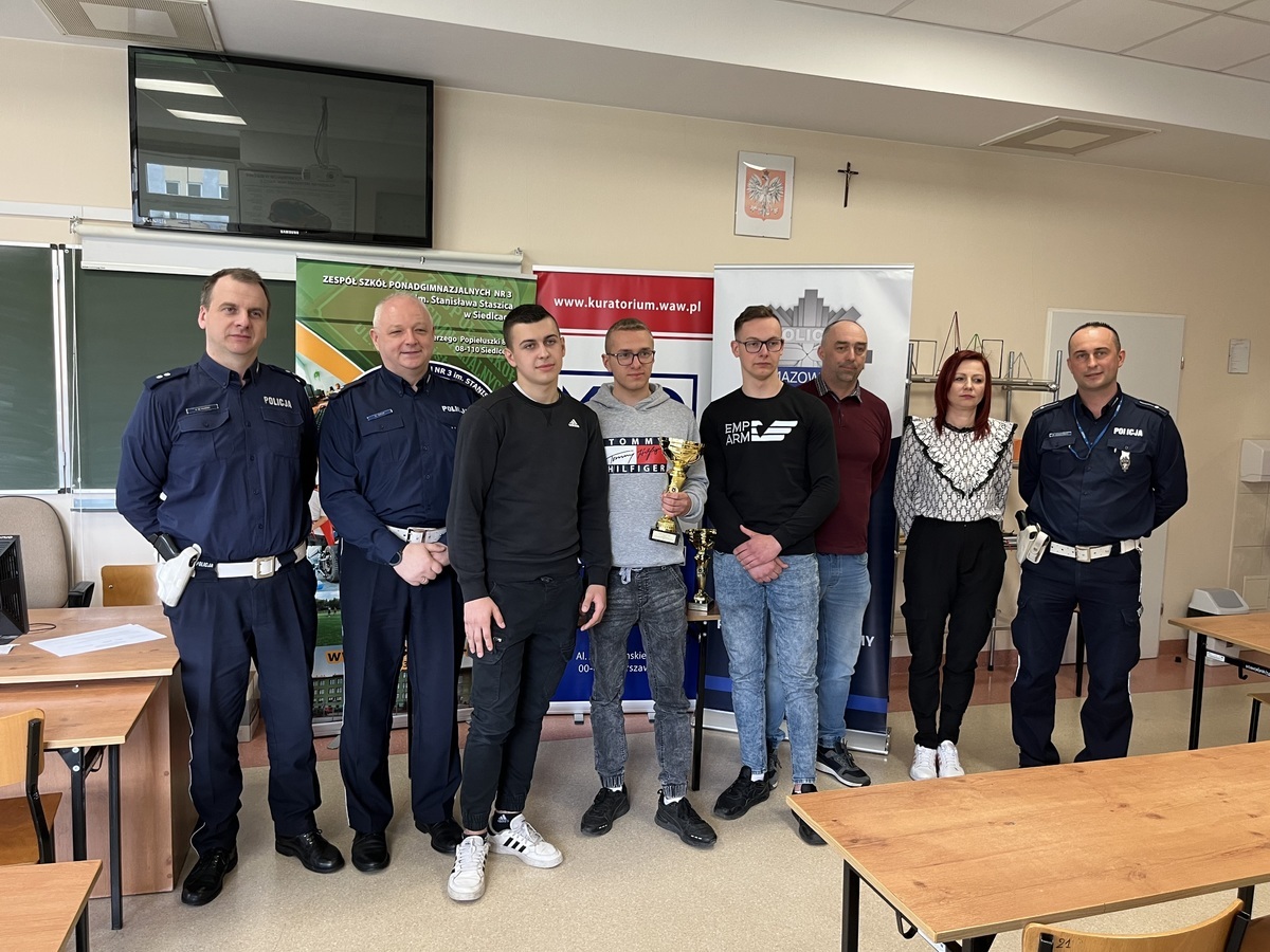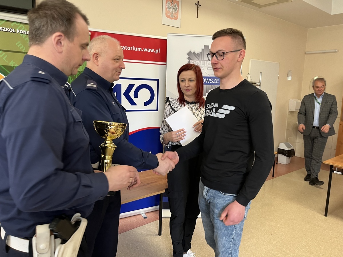 I miejsce w turnieju zajęła drużyna z Zespołu Szkół im. Jana Kochanowskiego w Węgrowie w składzie: Marcin Krasnodębski, Skarżyński Dawid, Zdzieborski Krystian z 4ae i to oni będą reprezentować nasz rejon w etapie wojewódzkim, który odbędzie się 23 maja 2023 r. w Warszawie.